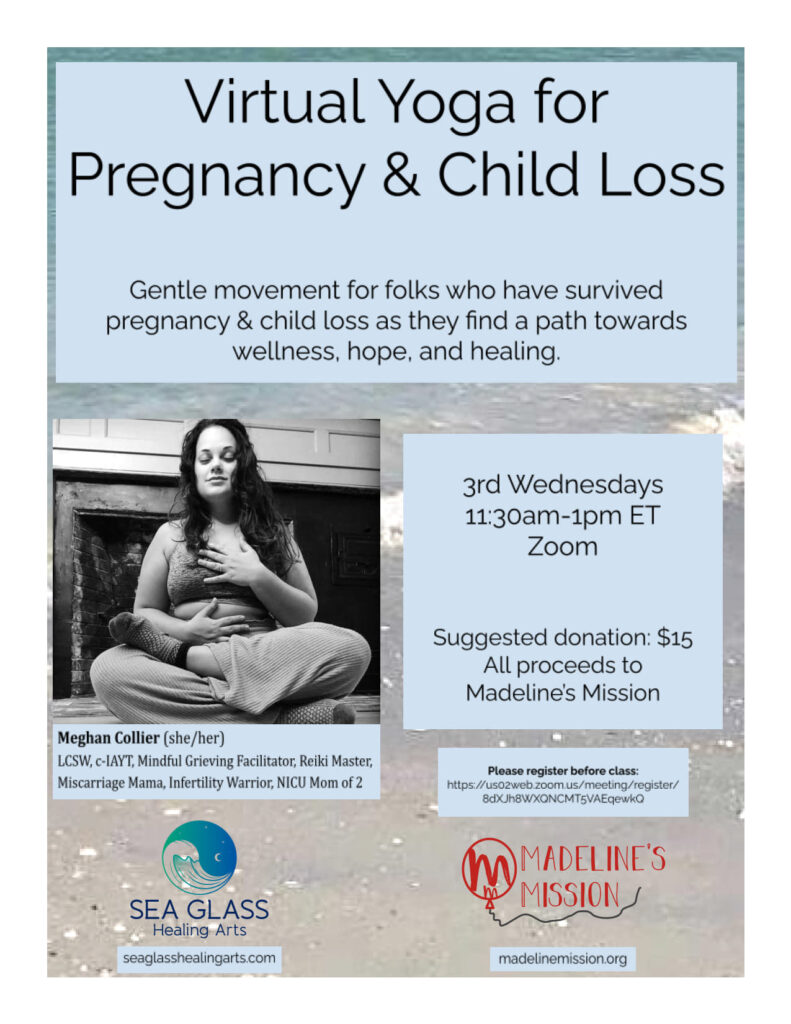 Led by a fellow loss parent- Meghan Collier! This class is offered both in-person and virtually, once a month each.